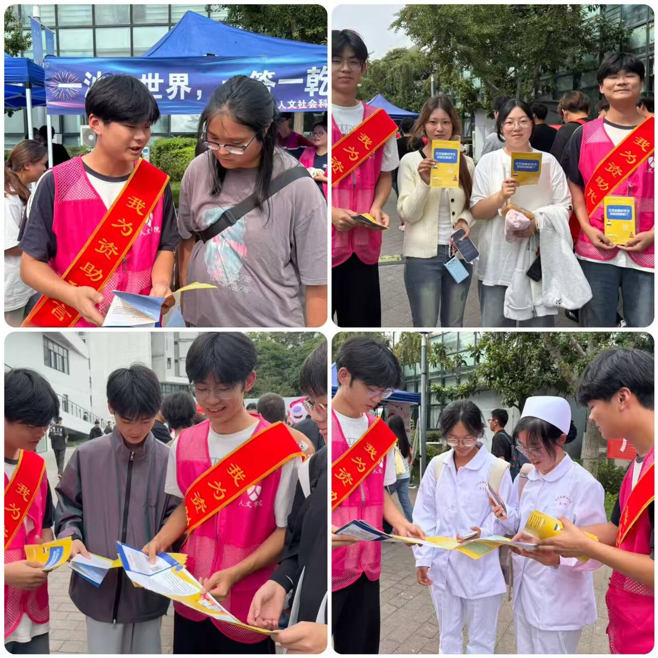除了妙趣横生的游戏环节,现场的政策宣传点也成为活动的另一大亮点。我院两位资助宣传大使全程驻点宣讲,以“朋辈身份+亲身经历”的方式传递政策温度。两位大使结合自身从政策受益到学业成长的经历,向学弟学妹详解奖助学金申报材料清单、家庭经济困难学生认定标准等关键信息,还在现场发放资助政策宣传单页,针对学生提问逐一答疑。“大使们讲得特别实在,连申请表格的填写技巧都提到了,比自己看文件清楚多了!” 现场咨询的学生纷纷点赞。