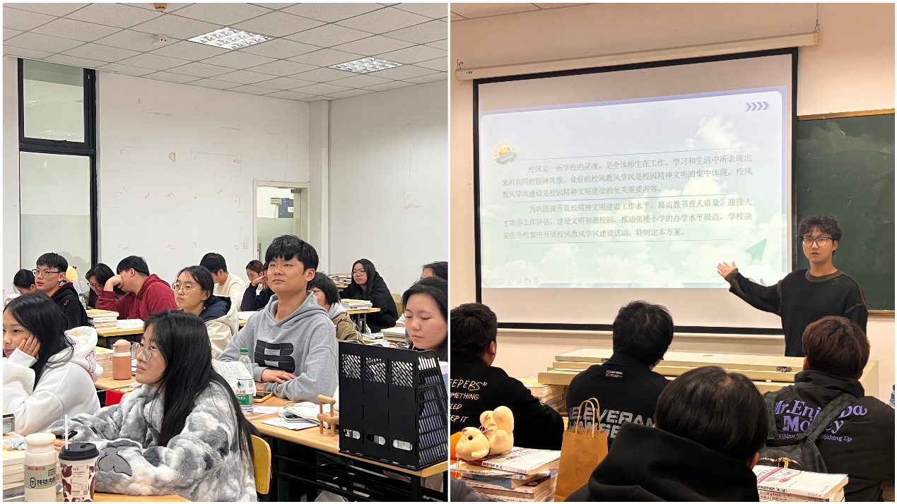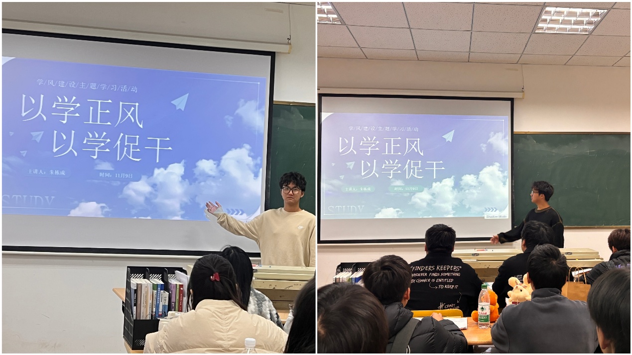 为持续深化优良学风建设,筑牢青年学生思想根基,近日,人文社会科学学院面向全体在校学生推出“以学正风,以学促干”主题信仰公开课。本次课程由朱栋成同学主讲,围绕学风建设的核心目标、实践路径与落地举措展开系统阐释,为学子们送上一堂兼具思想深度与实践指导意义的成长必修课。