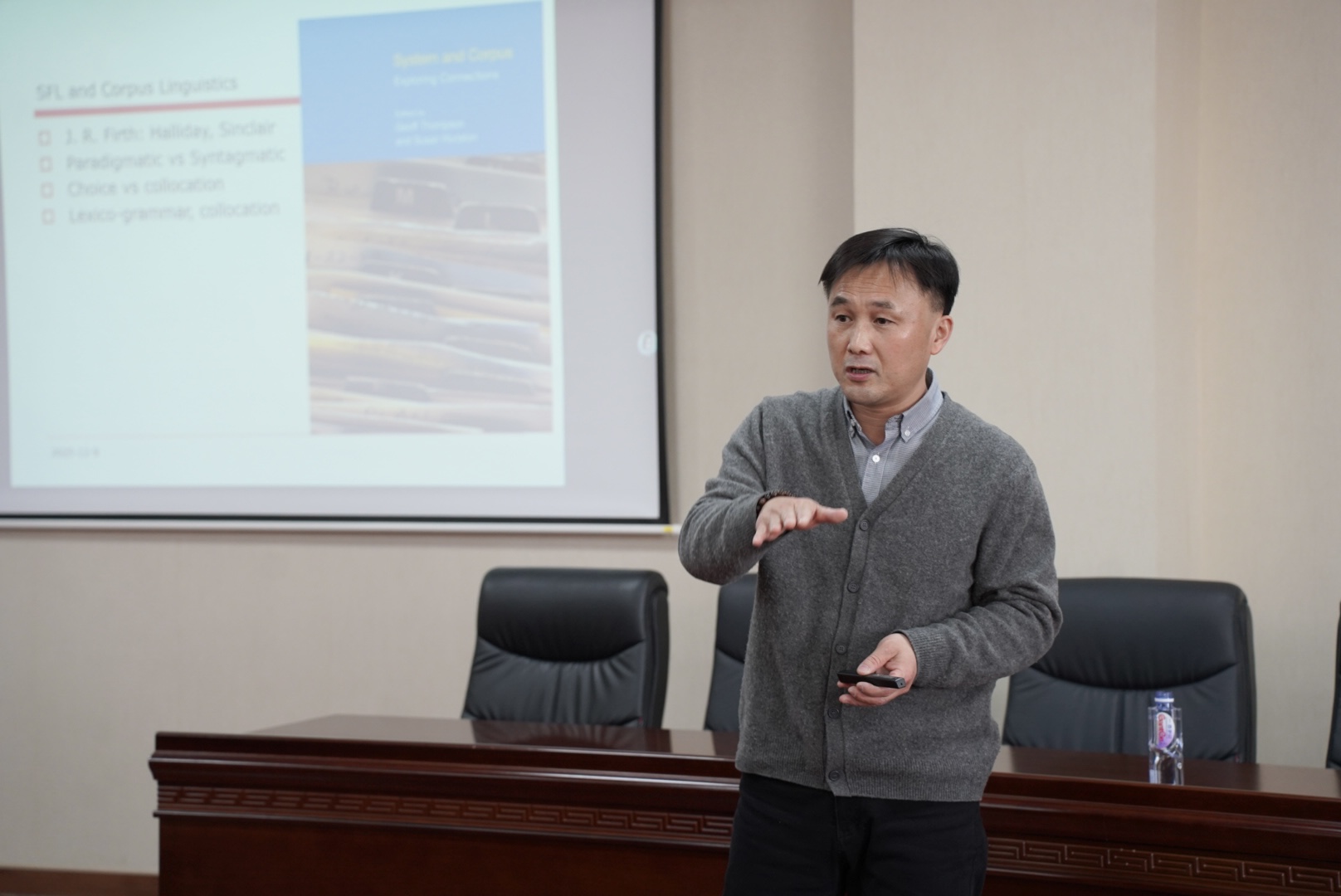 为全面提升教师的学术科研能力,促进教师个人发展,12月9日下午,人文社会科学学院“师路同行”教师发展沙龙举办活动,邀请苏州大学外国语学院张大群教授作了题为“语言学基础理论与英语教学”的学术讲座。本次讲座由学院副院长兼外语系主任马亚丽主持,校一级督导洪庆福教授以及外语系全体教师参加了讲座。