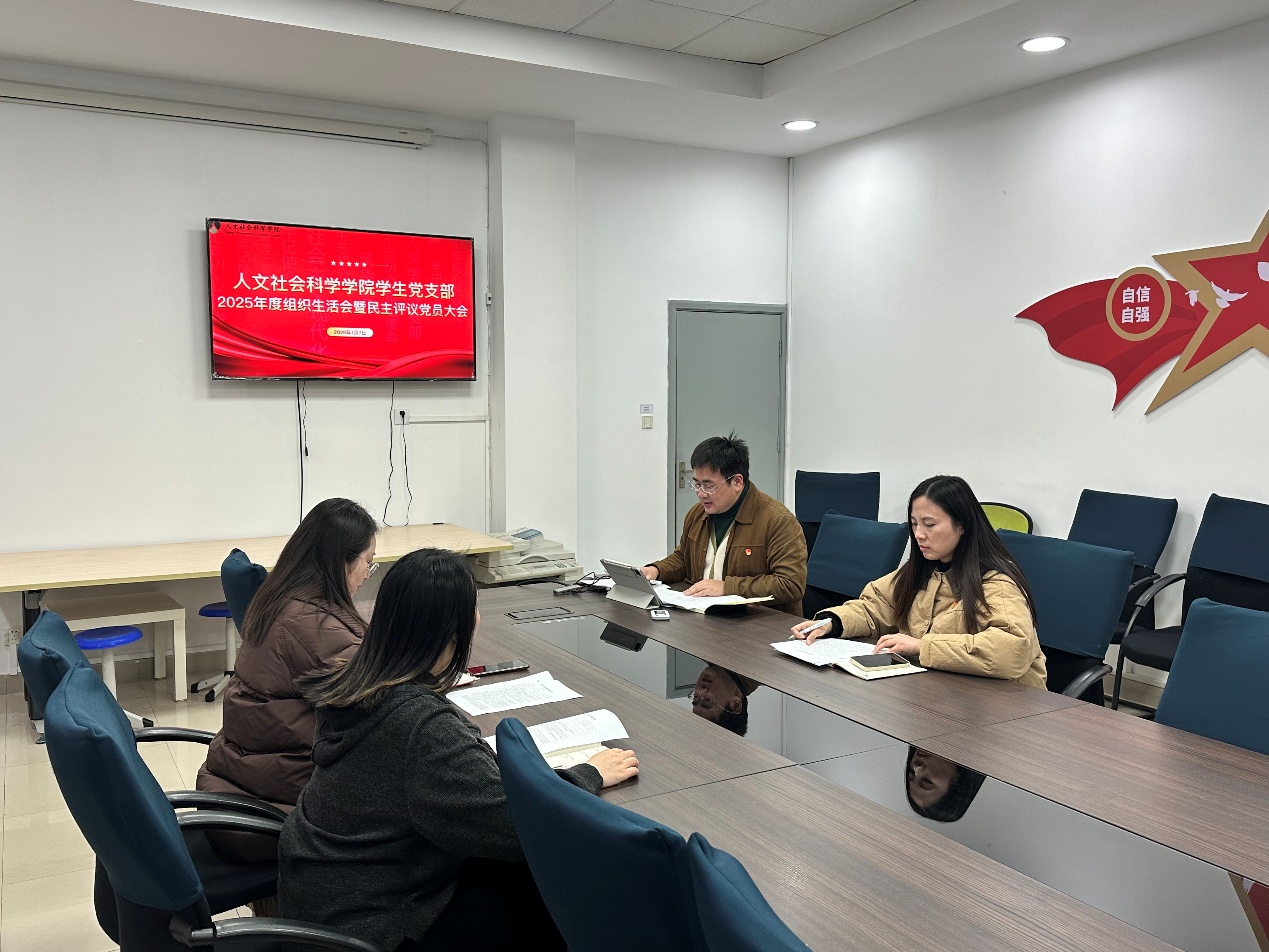 为深入学习贯彻党的二十大及党的二十届四中全会精神,巩固拓展主题教育成果,切实强化支部党员党性修养与纪律规矩意识,根据上级党组织部署要求,1月7日,人文社会科学学院学生党支部在行政楼234会议室召开2025年度组织生活会暨民主评议党员大会。会议由党支部书记吴敬德主持,全体支部党员参会。