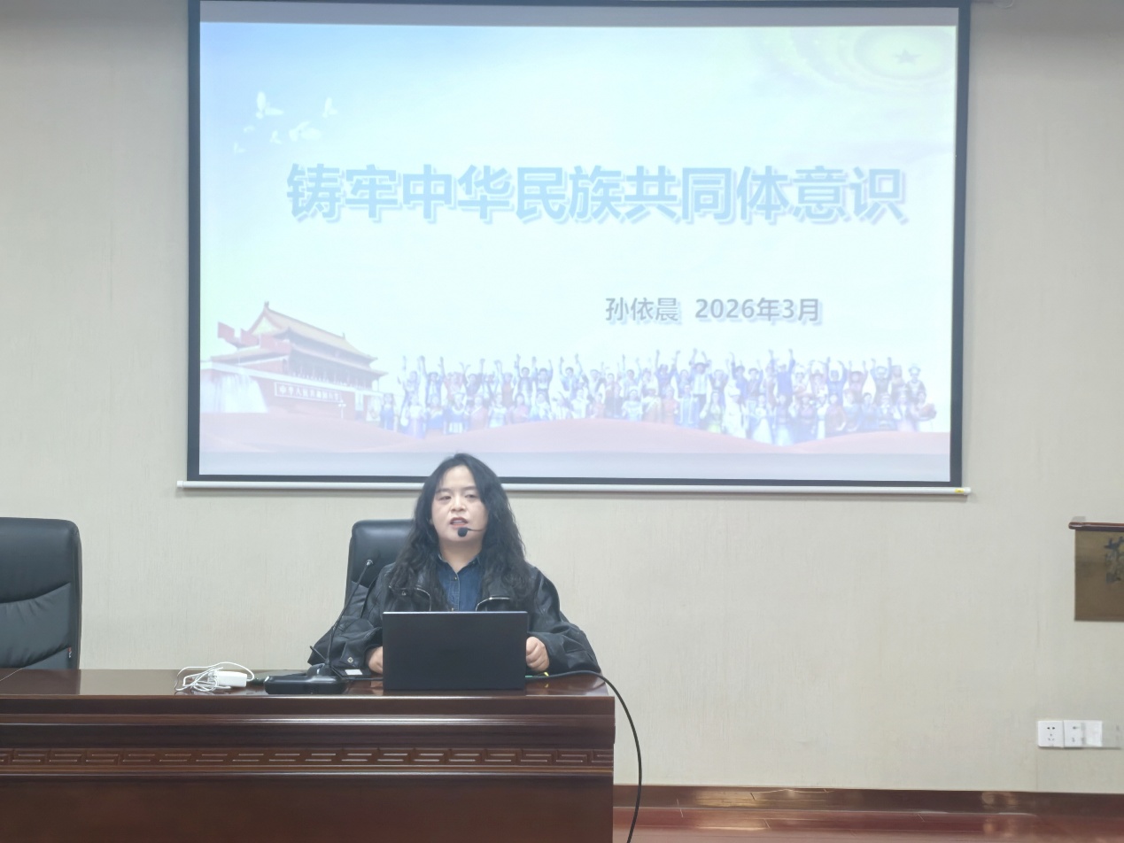 会上,孙依晨老师以铸牢中华民族共同体意识为核心,从战略意义、丰富内涵、实践深化三个方面作专题辅导报告。报告中,孙老师结合中东地区民族宗教冲突的现实案例,与我国56个民族和睦共融的发展现状形成鲜明对比,深刻阐释了中华民族共同体意识是我国各民族长治久安、繁荣发展的核心密码。同时系统讲解了铸牢中华民族共同体意识的“四个与共”共同体理念、“五个认同”核心要求和“五个共同”重要内涵,全面阐述了坚持党的全面领导、推动各民族共同富裕、构筑共有精神家园等实践路径,并深入分析了铸牢中华民族共同体意识在应对风险挑战、推进强国建设、改进民族工作中的重大战略意义。