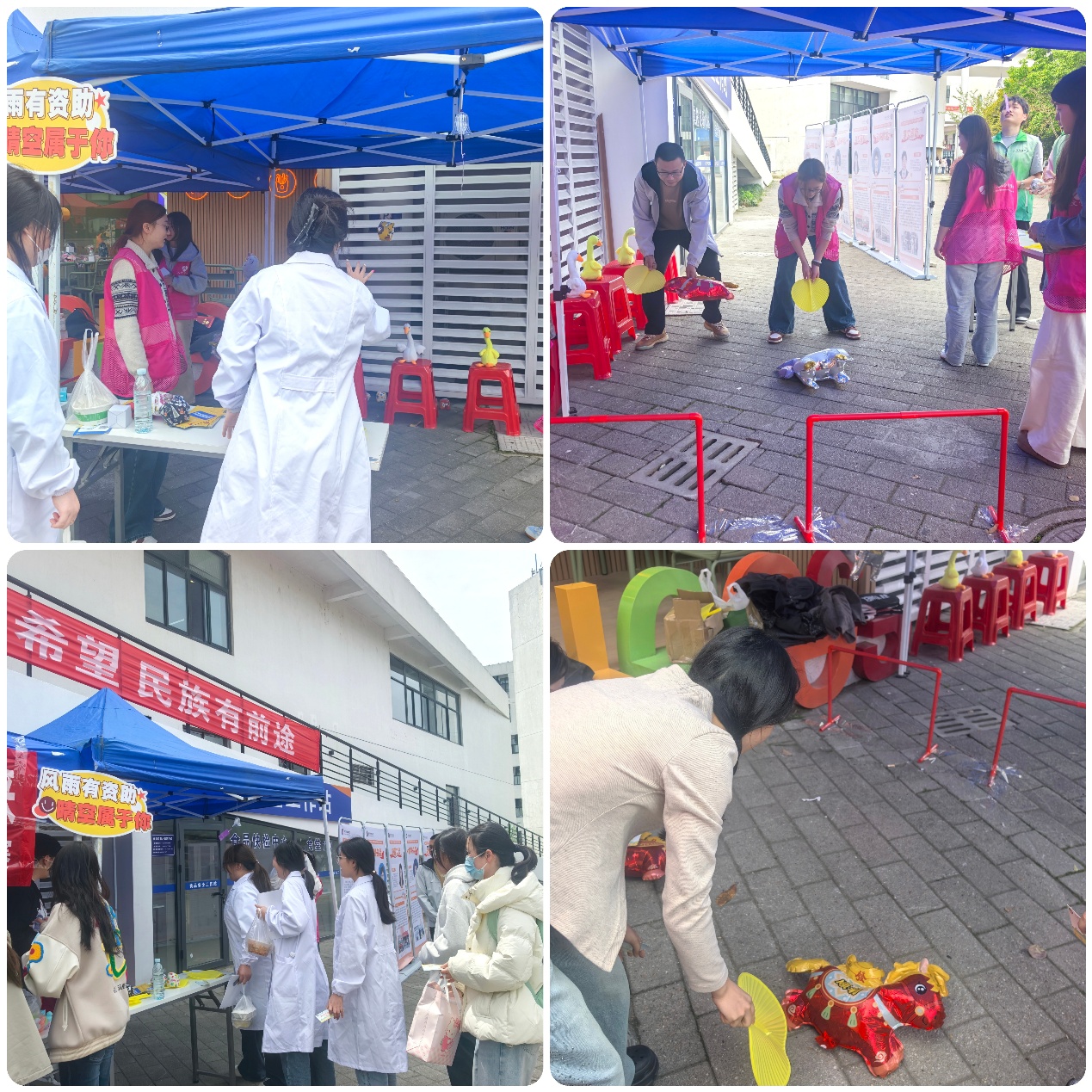 为深入推进学校发展型资助工作提质增效,全面普及国家及学校各类资助政策,明确资助申请流程、帮扶范围,传递发展型资助“凝心励志、赋能成长、提质强能”的核心导向, 4月8日,人文社会科学学院积极响应学校资助管理中心号召,在学校食堂广场开展“策马扬‘扇’,善行助梦”趣味广场资助宣传活动,以生动有趣的形式将资助温暖与政策知识传递给每一位学子。