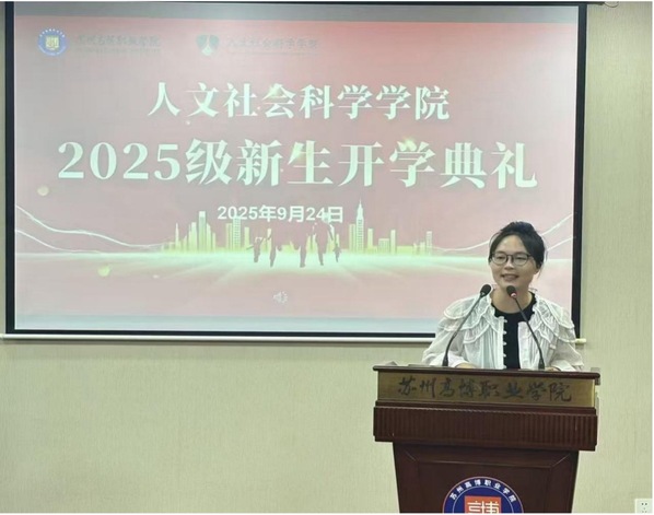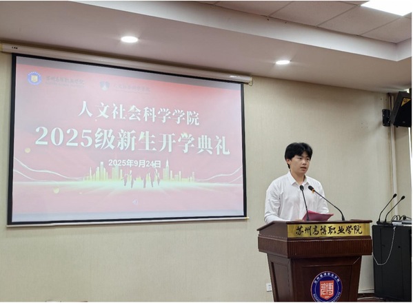 学院教师代表胡微结合各专业特点,寄语新生们练就真本领,成为各自领域的闪光点。并勉励全体新生,依托苏州人文底蕴,在学院多元平台上勇于突破、创造可能,主动开启精彩大学篇章,成为自己人生的执笔人。